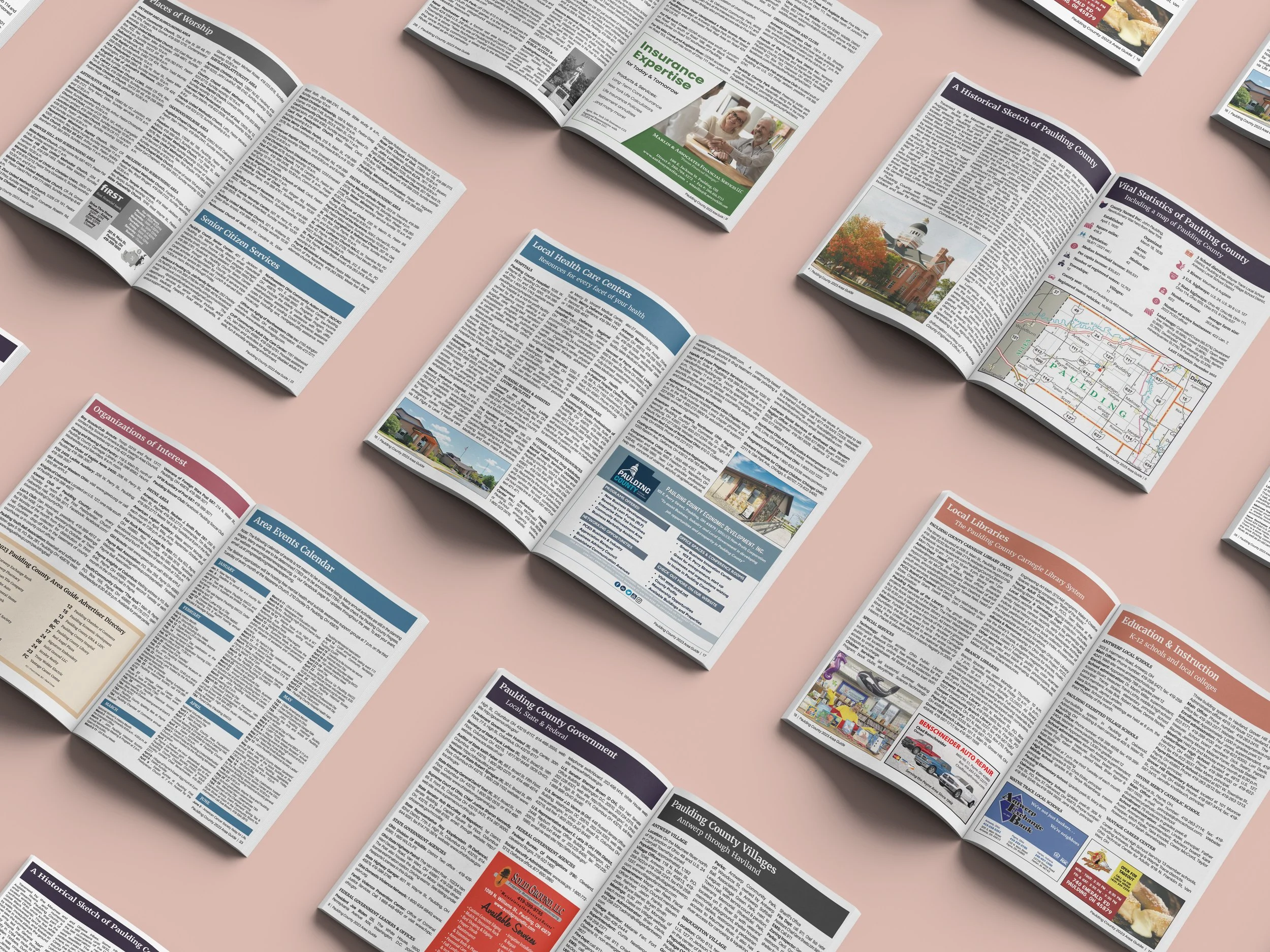 The Paulding County Area Guide is a one-stop guide for all the incredible things the county offers. The area guide provides detailed contact information for federal, state, and local government entities, county schools, businesses, and healthcare services within Paulding County. It has been reorganized in order of priority, based on the public's feedback, and grouped so similar categories are easily identifiable. The guide's color palette was pulled from the cover image, and each section was assigned its own shade. I condensed the information during the reorganization process, decreasing the number of pages and our printing costs. The publication's production had many steps, allowing me to practice preparing all the parts for different printer specifications, all within a 4-5 day window. Click on the image of the publication's cover for the entire PDF to flip through!